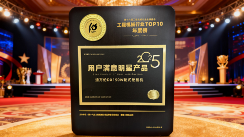 近日,第十六届工程机械品牌盛会在北京隆重召开,“2025年度工程机械行业TOP10年度榜”也在此盛会中正式揭晓,迪万伦DX150W轮式挖掘机以深厚品牌底蕴及出色产品力获评“2025用户满意·明星产品”,成为榜单中唯一的轮式挖掘机产品。