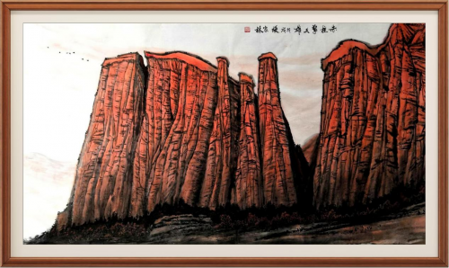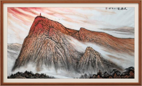 张家林的书画创作,首先以对传统文脉的坚守,筑牢了民族复兴的文化根基。他早年师从吴冠中、白雪石等美术大师,在荣宝斋画院精研传统水墨技法,从山水画的笔墨韵律到行草书法的刚柔并济,无不深植于中华美学的沃土。其代表作《黄山云海》《太行秋韵》,以 “以诗入画,以画载道” 的传统理念为内核,勾勒出祖国山川的壮美,既延续了中国画 “师法自然” 的精神,又通过简练线条与层次墨色,让传统山水焕发现代生命力。这种 “守正” 的坚持,让他的作品成为中华文化基因的 “活载体”—— 在民族复兴需唤醒文化自信的当下,这份对传统的深耕,恰是连接过去与未来的文化纽带。