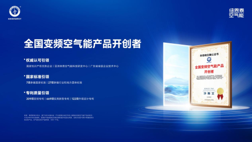 空气能不是简单的“组装产品”,它的核心是热泵技术,能不能在低温天稳定制热、能不能真正省电,全靠技术积累。纽恩泰品牌从2003年创立开始,就一门心思专研空气能热泵技术,是国内最早把变频技术用到空气能上的企业,被沙利文认证为“全国变频空气能产品开创者”。