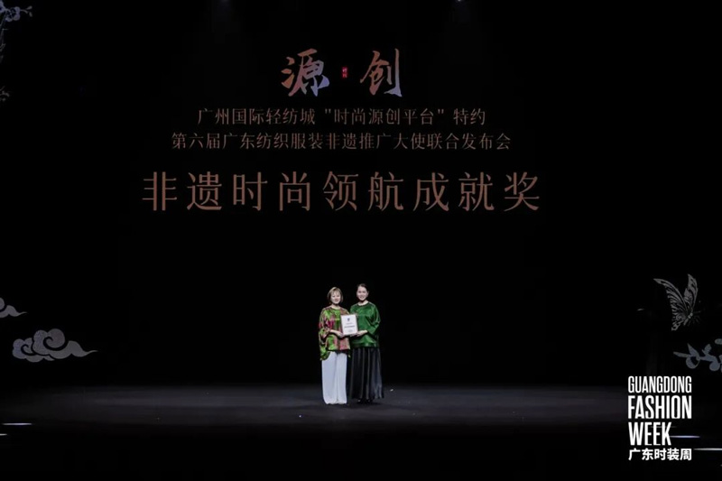 活动现场,组委会特向广州国际轻纺城颁发“非遗时尚领航成就奖”,表彰其“时尚源创平台”在推动纺织非遗创造性转化、创新性发展方面的持续努力与卓越贡献。广州国际轻纺城作为国家级纺织品交易枢纽——中大纺织商圈的核心龙头,汇聚了近3000家国内领先的服装面辅料品牌供应商,已成为业内最具影响力及展贸交易量最大的纺织面辅料交易平台和时尚趋势交流中心,是当下众多国内外服装采购商、时装设计师和服装买手观察时尚潮流趋势的窗口。