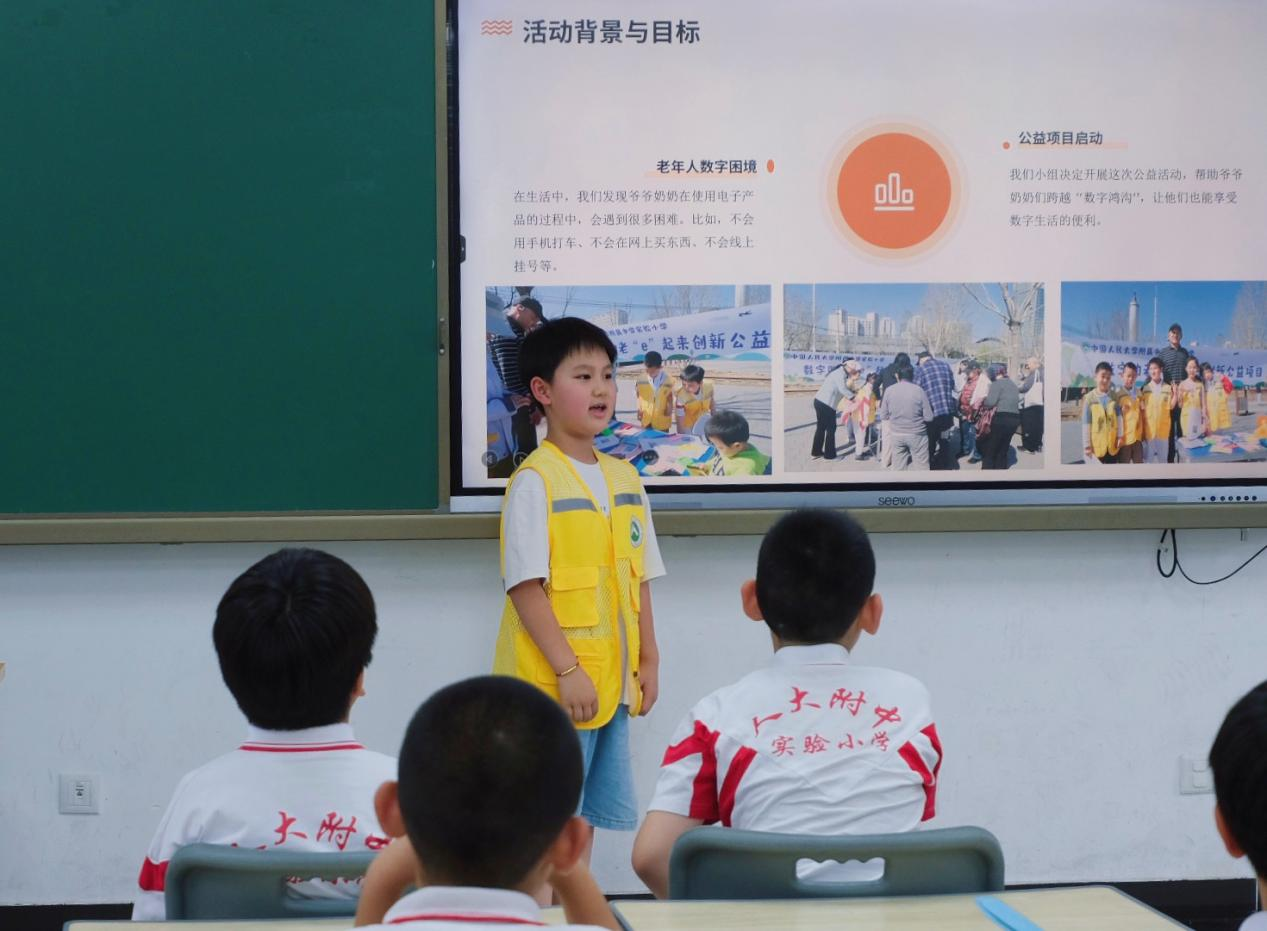 新时代浪潮下,培育心怀大爱、勇担责任的时代新人,是学校践行社会责任教育、构建温暖社会的关键使命。中国人民大学附属中学实验小学长期重视公益教育,近几年该校以《创新公益实践》课程为依托,引导学生关注社会痛点,践行社会责任。近日,该校二年级 6班“数字助老‘e’起来”创新公益项目,成为师生用行动诠释社会责任、传递人文关怀的有力见证。