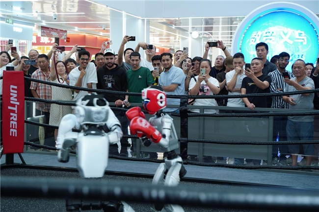 与此同时,AI大模型应用、数字贸易、跨境电商等新模式新业态蓬勃生长。群核科技的“酷家乐棚拍”项目,能够实现1分钟出图、5000种场景、1/10成本,还和网易、腾讯开展了游戏周边产品洽谈,目前义乌市场有千余家商户生产IP的周边产品,覆盖各类IP形象近千个。具身智能技术在市场内已经有了实际应用,云深处的四足机器人代替安全员,开展市场夜间巡查,更高效、更便捷、更安全。
