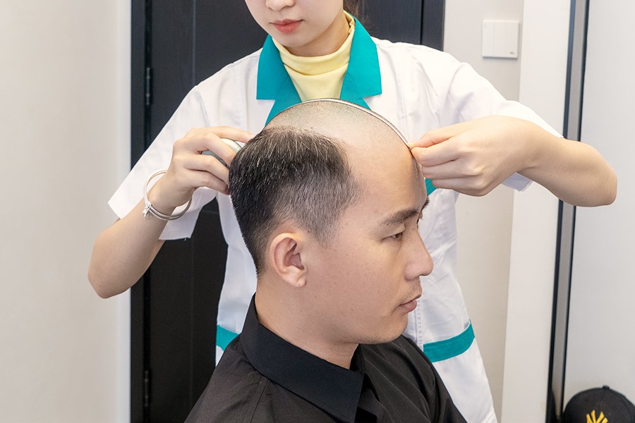 销售梁先生表示:“在我们这个行业,给客户留下一个好印象是十分重要的。戴上假发后,我形象上的油腻感没有了,变得更有自信了,对我个人的帮助很大。”