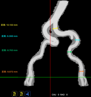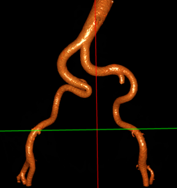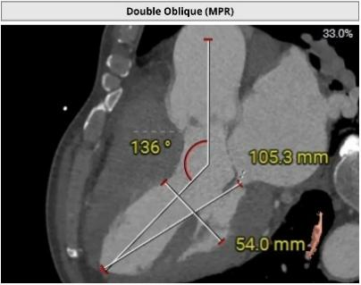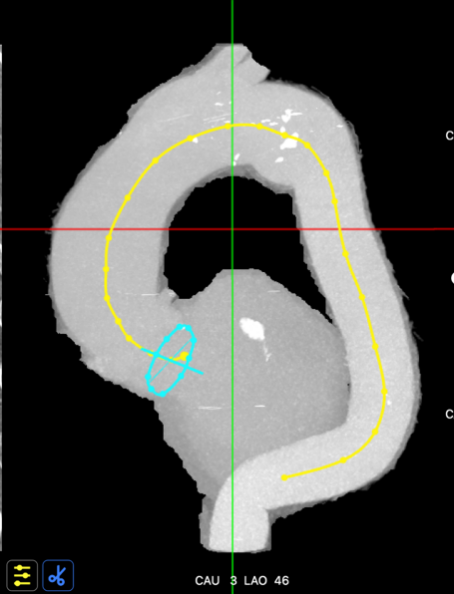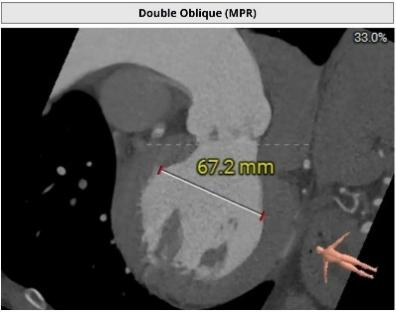经超声提示:主动脉窦部瘤样增宽并主动脉瓣关闭不全伴钙化;升主动脉瘤样增宽;左房、左室大;二尖瓣钙化,为老年性退行性病变;主动脉硬化;左室收缩功能减低;彩色血流示:主动脉瓣上血流速度加快,瓣下反流(大量);二尖瓣反流(少-中量)。EDV:343ml ESV:184ml EF:46% FS:23% SV:159ml。经详细评估患者CTA检查后,瓣环偏大,暂无适合介入瓣膜,患者可考虑外科手术,家属及患者一致决定择期介入手术。2月前因上述症状加重,再次当地医院住院对症治疗,症状好转后就诊西京医院。