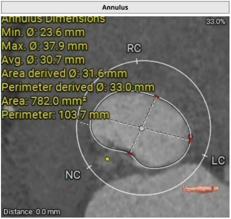 近日,空军军医大学第一附属医院(西京医院)杨剑教授、刘洋教授、金屏教授、翟蒙恩教授团队,凭借精湛技艺与创新器械的完美结合,成功挑战并完成一例极具里程碑意义的经导管主动脉瓣膜置换术(TAVR)。该患者拥有周长高达104mm(直径约33mm)的罕见超大瓣环,同时合并横位心解剖结构(瓣环水平夹角66°)及重度主动脉瓣纯反流,手术难度大。