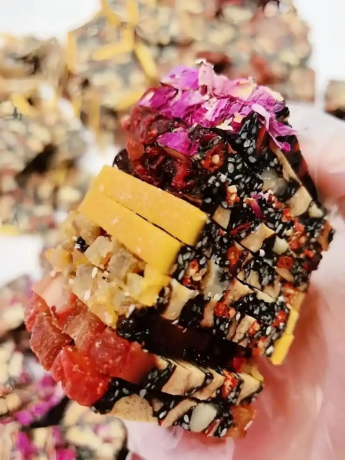 4. 成型:加入辅料拌匀后,倒入模具自然冷却凝固,再手工切成小块,无机械压制,保留自然口感。