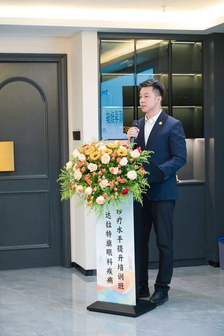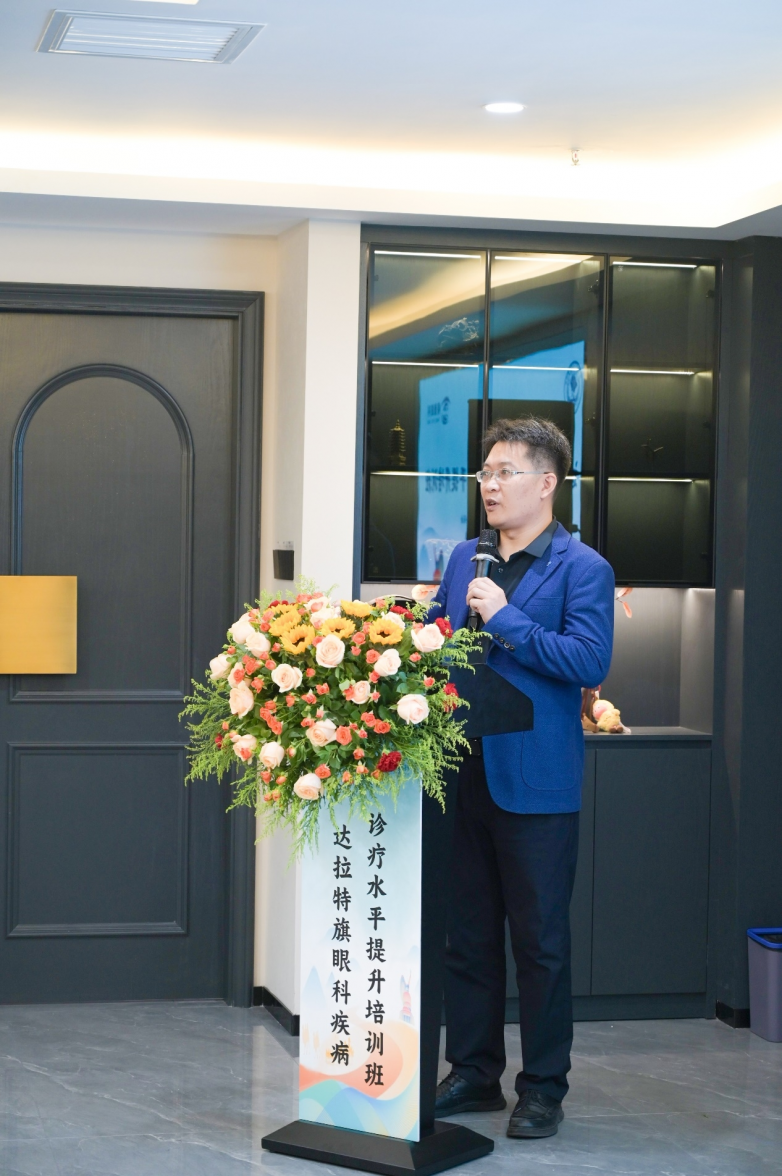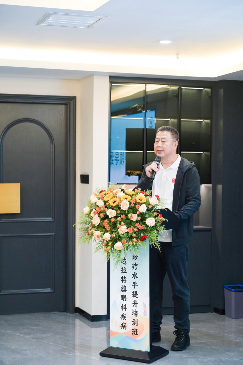 随后, 达拉特朝聚眼科医院杨传文院长作为承办方领导致辞,他介绍了朝聚眼科在眼科诊疗领域的积淀与担当,并表示将以本次培训班为契机,积极响应达拉特旗卫健委针对眼科健康发展的十五五规划,持续发挥专业优势,助力基层眼科医疗能力提升。