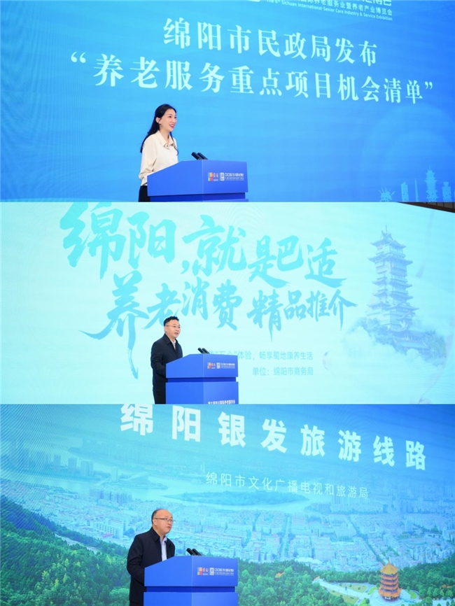 第六届四川国际养老服务业暨养老产业博览会绵阳分会场开幕式及供需对接大会上,绵阳市民政局发布了《养老服务重点项目机会清单》。同时,绵阳市商务局进行了养老消费精品推介,推动适老化产品直抵消费终端。绵阳市文旅局发布了“银发旅游路线”,助力“银发族”畅享安逸晚年。供需对接环节中,18家企事业单位、社会组织、高校发布企业供需清单,多家银发经济重点产业链企业分别上台进行了精彩推介,围绕重点产业链开展产品与服务、研发与技术等进行了深入的沟通交流,激发了银发经济市场活力,助力银发经济产业链协同发展。