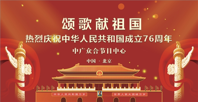中广众合节目中心总编辑、中央新影中学生频道《颂歌献祖国》栏目、《中广电视访谈录》栏目组总制片人兼总导演刘嘉有介绍:在国庆晚会节目申报审核中,以突出爱国宣传、以红色文化为主,共同掀起全民爱国热情,响应围绕:“举旗帜、聚民心、育新人、兴文化、展形象,建设社会主义文化强国”为目的,共同为庆祝中华人民共和国成立76周年献礼!