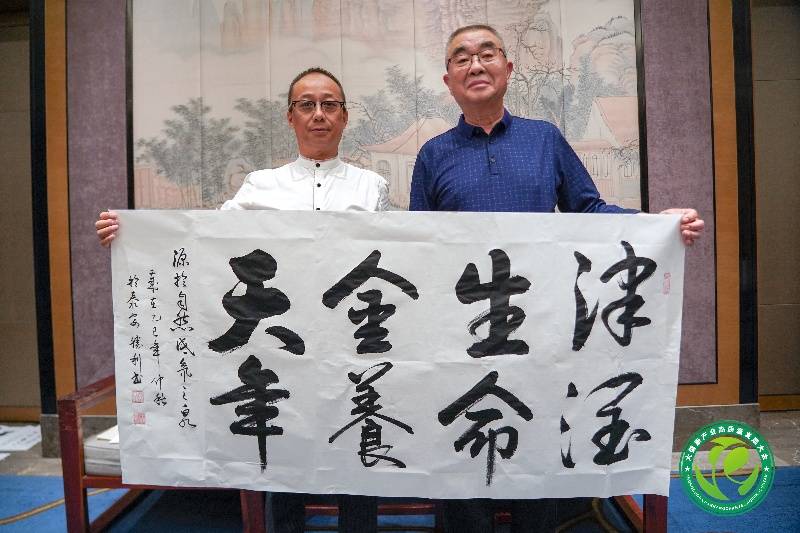 国务院行政司原常务副司长王胜利现场为津金饮品有限公司亲笔题词并合影留念品质为基,透明运营筑牢信任