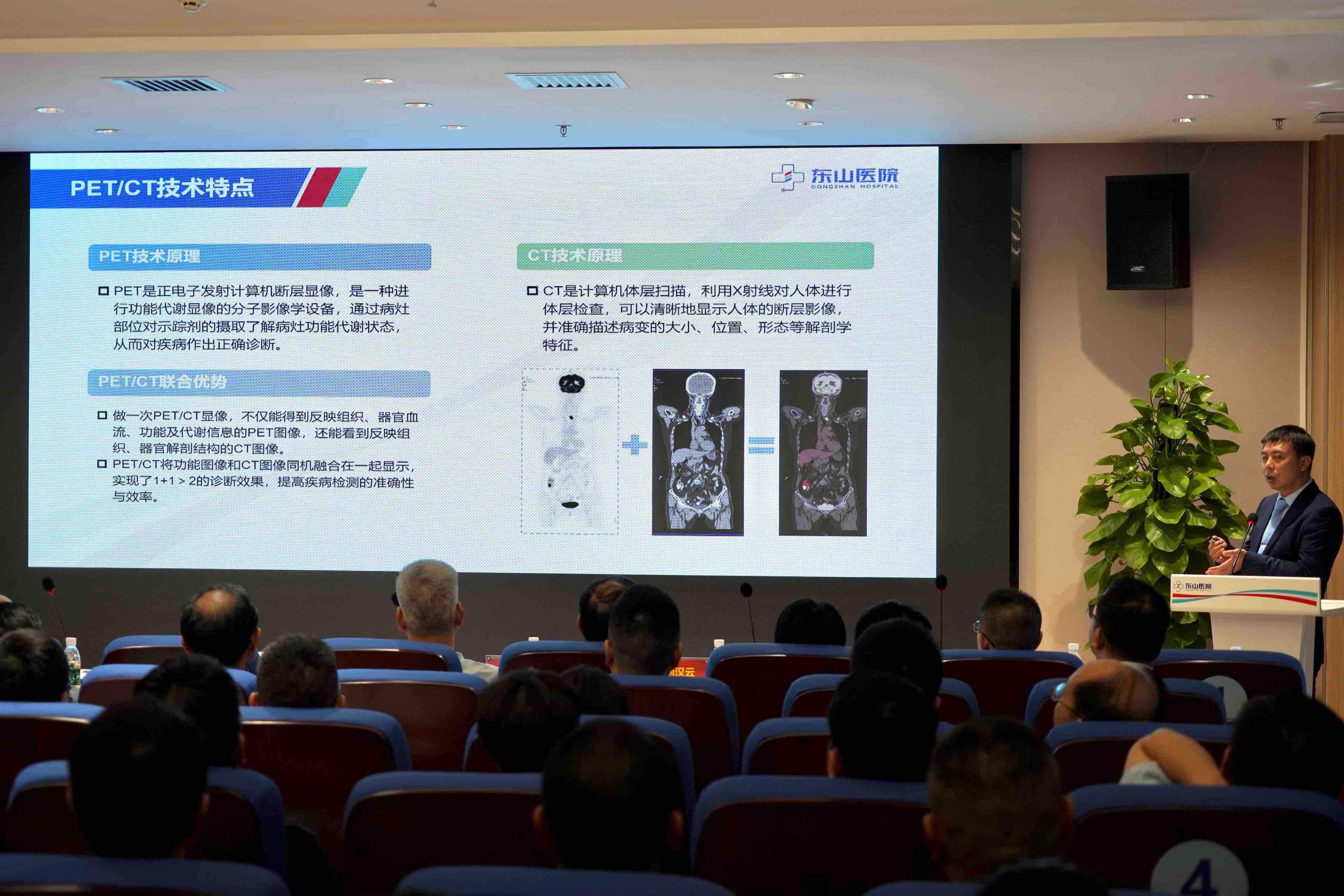 当天,与会嘉宾们走进东山医院肿瘤精准放疗中心,了解该中心建设运营情况及新技术。在同步举办的肿瘤精准诊断与治疗交流会上,专家学者们围绕PET-CT的应用等前沿话题展开了热烈讨论,思想的碰撞只为同一个目标:如何为患者提供更优的诊疗方案。交流会现场气氛热烈,富有创见,充分展现了各方对肿瘤“早筛-精准治疗-康复”全链条的思考。
