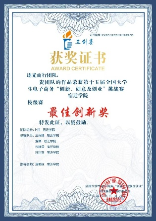 在2025年多项全国性高水平学科竞赛中,宿迁学院《逐光而行》创新团队表现突出,团队深入开展社会实践、积极提出创新模式,获得了良好的社会影响,在 “创新大赛”“挑战杯”“节能减排”“三创赛”等权威赛事中屡获佳绩,并成功获批国家级大学生创新创业训练计划立项,充分展现了新时代大学生立足专业、服务社会的社会担当。