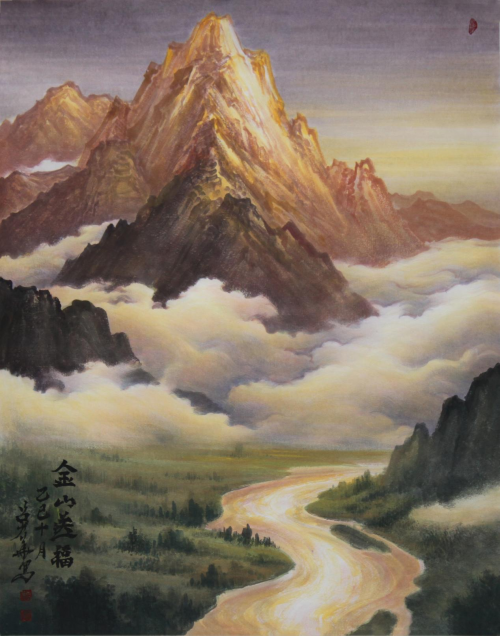 作为中国美协会员、国家画院院士、国家一级美术师,享受国务院特殊津贴的他,头衔背后是数十年如一日的艺术坚守。其山水作品尽显 “骨法用笔” 的精妙,长线凌空杀纸如千钧坠地,顿挫间满是钢打铁铸的质感;水墨调配出神入化,淡不伤神、浓不生滞,渲染技法暗合 “外师造化,中得心源” 的师道;随类赋彩间,色墨相融、气韵生动,既藏文人画的雅致哲思,又具 “画为盛世歌” 的宏大格局。超巨幅油画《黄河壶口特写》被人民大会堂收藏,便是他以艺术诠释民族精神的生动证明。