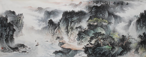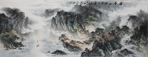 观吕少华先生的山水作品,骨法用笔的特点相当鲜明,笔笔相生,勾勒滑畅,长线凌空杀纸,可见千钧之劲。知线顿挫有效,总是钢打铁铸的质感。山水有笔法,则有线性,依线而作,正宗气象。他的山水神工塑其形,使用了大量的线条,长短相较,高低相盈,组织相当严谨,没有一根线条产生出松懈的感觉,丁谨用笔,亚谨设线,笔笔现怕岱,可谓是出神入化的好笔法。吕少华先生调(tiao)用水墨,出神入化,不因淡伤神,不因浓生滞,可以破除一些用墨障碍,走进水墨师道的自如。道法自然的渲染技法,恰是外师造化中得心源的证见。再加上随类赋彩的恣意,让山水铺展出色不碍墨,墨不碍色的丰富层次,经营得气韵生动,表现得诗词动心!把山水画得浩莽而不失文气,处处可见独座临流、云上山巅的哲学气象。所以其作品深谙文人画的来龙去脉,可以承载山水文化古今相续!吕少华先生的山水艺术,专业功夫到位,写意丰神到家,执笔墨作山水,贵有画为盛世歌的安大主题!技到孰时称为巧,艺到深时称为妙。其热之大、其力之沉均表现其动力所在。给人以突出、稳健、灵动的艺术享受,渗透着大与美的张扬和平衡。生动地表现了创作者刚直、爽利、豪放性格。已经具有很高收藏价值。相比于纯粹的工笔画作,吕少华先生的写意语境却是能展现出更加浓郁的传统风范,当然这也不仅仅只是源自于笔墨的纵意挥毫,其对山水的文化寄情和诗情流露,也同样都是两个不容或缺的重要部分!用笔构意可见风骨之洞达,墨色浸染可感惬意之和谐,如此所绘山石,即是遒健而不失于奇绝,所绘云水,亦是飘荡而不失于虚实,不仅如此,得益于他对青绿山水的高度参悟,其整幅画面的深远意境也是有得到了更加深厚的层次表现,花青妙绿层层罩染,墨色之间互不相碍,而如此绘得山水气象,观之也真是钟灵毓秀也!可游可居的画面赋韵和画面布局,亦是吕少华先生能树立丹青高品的创作要点所在!并且对于吕少华先生而言,不管是何种山水题材,在他的笔下都是可以经心迹而抒干妙培,写生取之不尽,用之不竭,构意澄怀映道,别具一格,而那诸多截然不同的山水画面组合,由此也尽是可以供观赏者为之倾心悦目!根植于青绿山水的秀雅,蕴藉于林木幽泉的旷逸,众幅山水画面,恰如隐居之境浮现纸端,未有一丝躁气,更没有任何的矫饰和造作,此诚是谓诗情画意可赋其中,心手双畅皆可寄情!