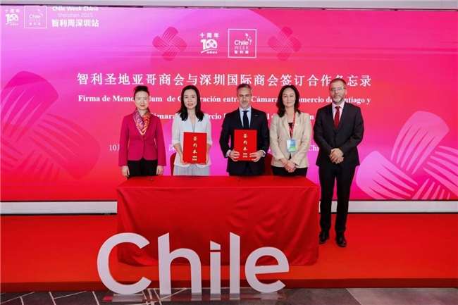 10月23日 ,由智利出口促进总局(ProChile),智利驻广州总领事馆商务处主办,深圳市福田区人民政府、深圳市南山区人民政府、深圳贸促会、深圳国际商会、南山国际化交流中心等单位大力支持的 2025智利周(深圳)正式开幕。本届“智利周”对中智关系具有特殊意义:共同庆祝两国建交55周年、中智《自由贸易协定》签署20周年(该协定为中国与拉美国家签署的首个自贸协定),以及“智利周”在华举办十周年。同时,本届活动旨在搭建智中企业交流合作的平台,探索数字经济与创新产业的新机遇。