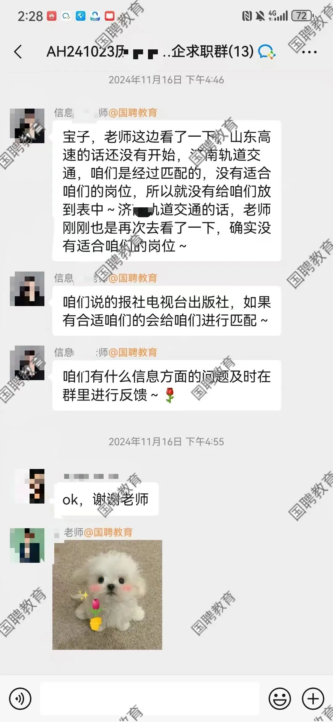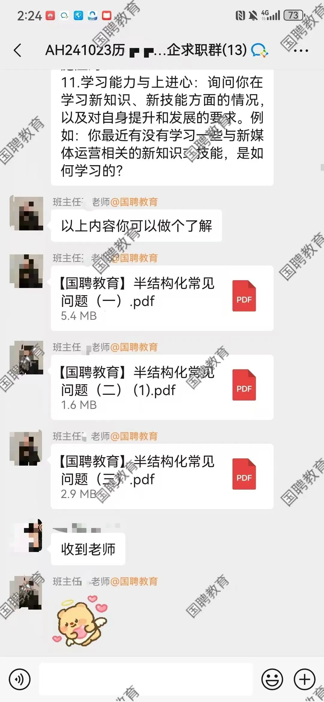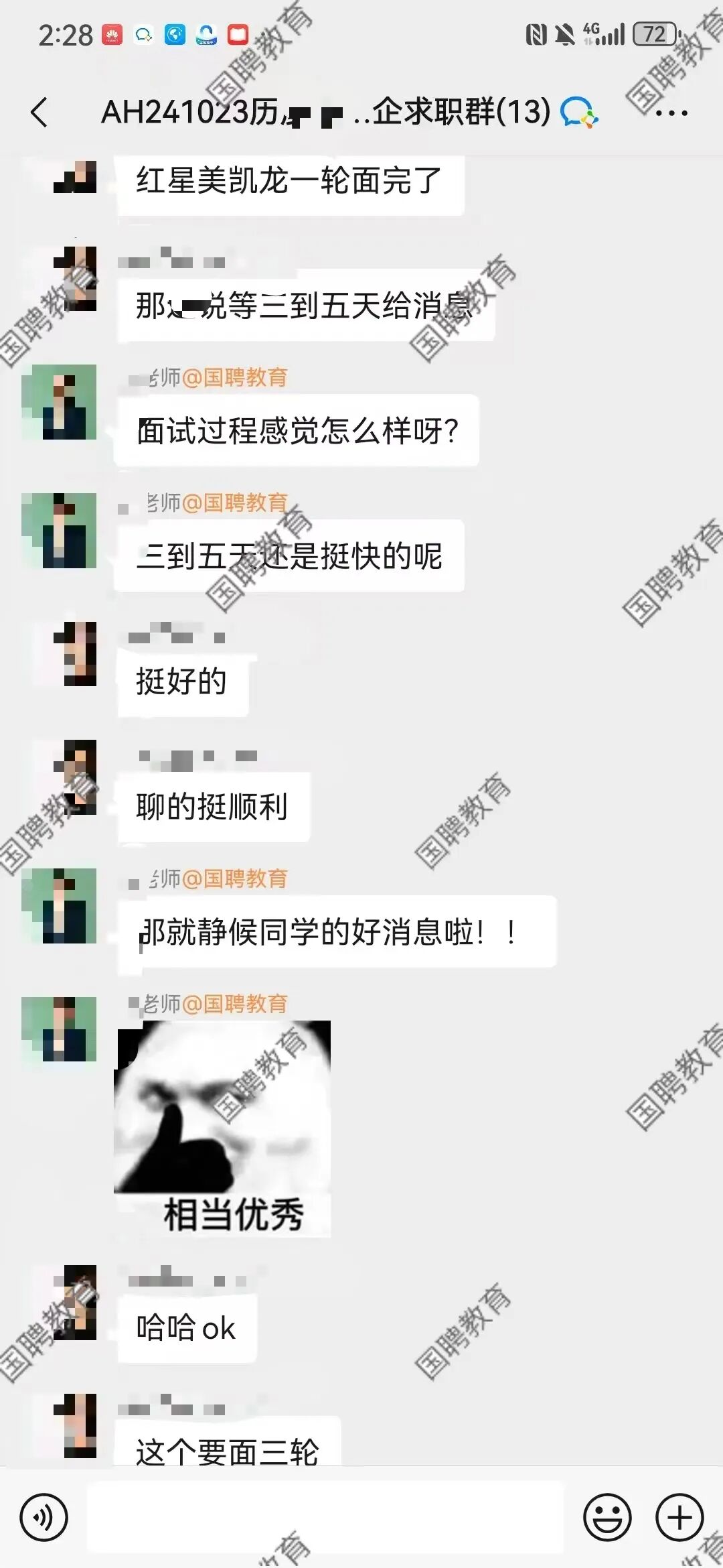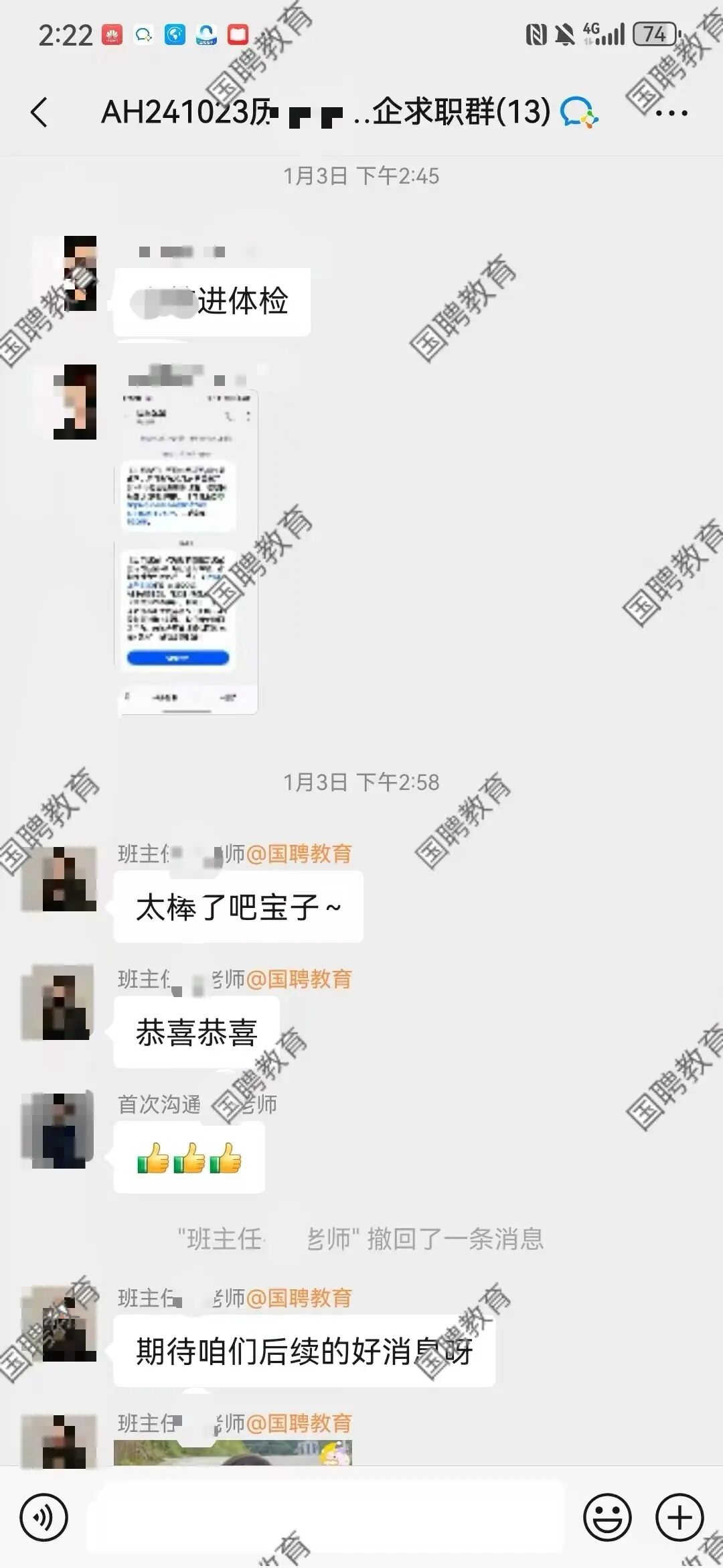 在国聘教育老师们的帮助下,从完善简历开始就体现出来老师们的细心和专业,在之后的笔试和面试课程中,我逐渐掌握了一些招聘的技巧和信息差,加上老师们为我量身定做的岗位表,让我在秋招中逐渐找到了属于自己的节奏,最终也成功上岸。