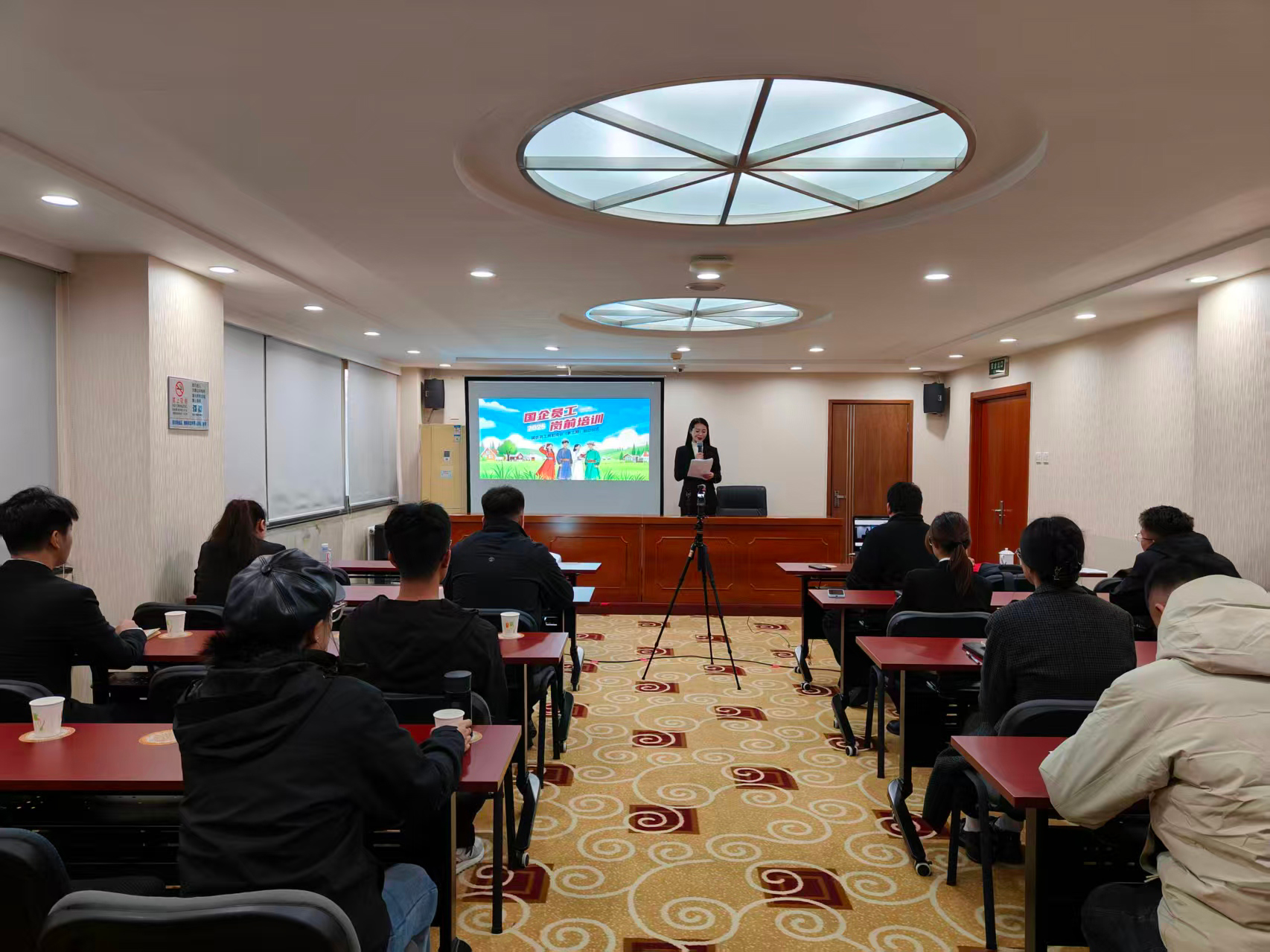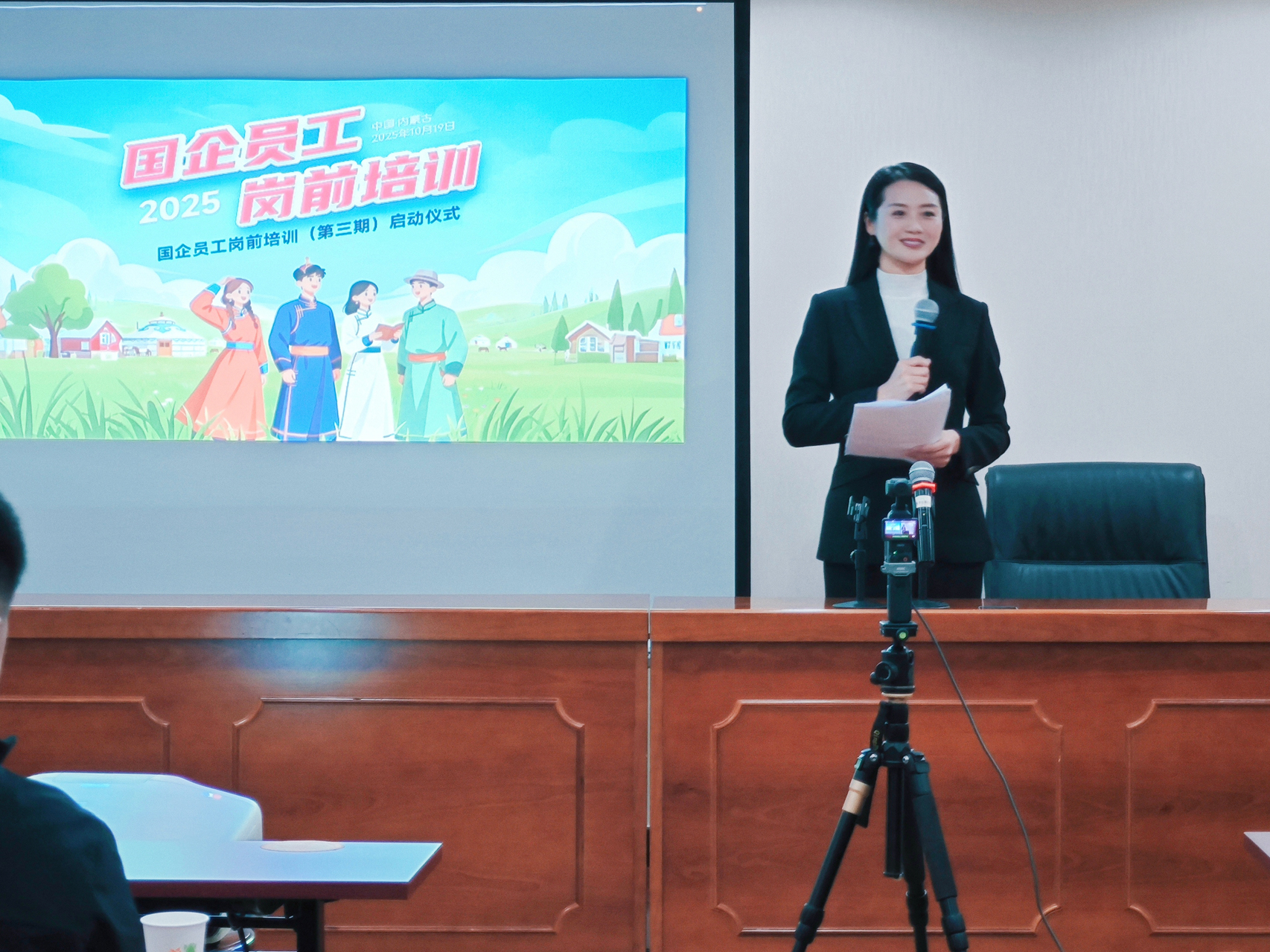 开班仪式由著名主持人彭芊羽主持,现场氛围热烈。仪式初始,主持人组织线上线下学员开展“云端问候”互动,线上学员在评论区齐刷“新团队,新征程”,内蒙古线下学员以热烈掌声回应,迅速拉近各地学员距离。随后,主持人详细介绍了培训主办方背景:中国大学生就业网作为工信部指定、经ICANN批准的全球通用国际顶级中文域名网站,具备实名认证与京公网安备资质,始终以落实高校毕业生就业政策、搭建就业服务平台为核心;《中国企业报》集团全媒科技有限公司(国有控股51%),隶属中国企业联合会,深耕企业党建服务与全媒体运营,为新员工清晰展现了未来奋斗的“大家庭”面貌。