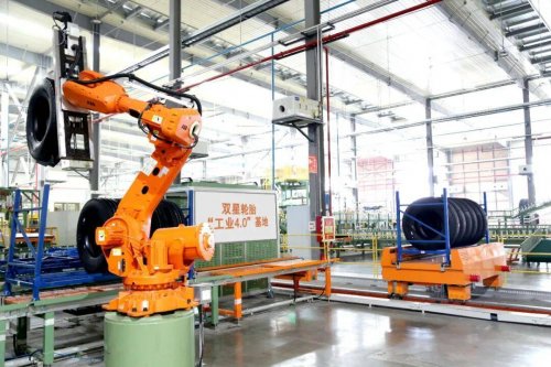 其中,工厂采用自主研发的智能物理信息系统,实现物、人、设备、位置的信息智能匹配,解决了全球以液体和粉体为原料无法实现全流程制造的难题。“工厂中80%的智能装备(包括11种机器人)都是由双星自主研发和制造的。相较过去,工厂生产效率提高近3倍,产品不良率降低80%以上。”双星轮胎制造本部总经理孙庆江介绍。