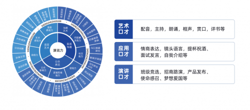 应用口才维度:则聚焦生活实用场景,包括情商表达、镜头语言、提杯祝酒、面试发言、自我介绍等,让表达力成为孩子适应社会、服务社会的必备技能,包含三大核心能力: