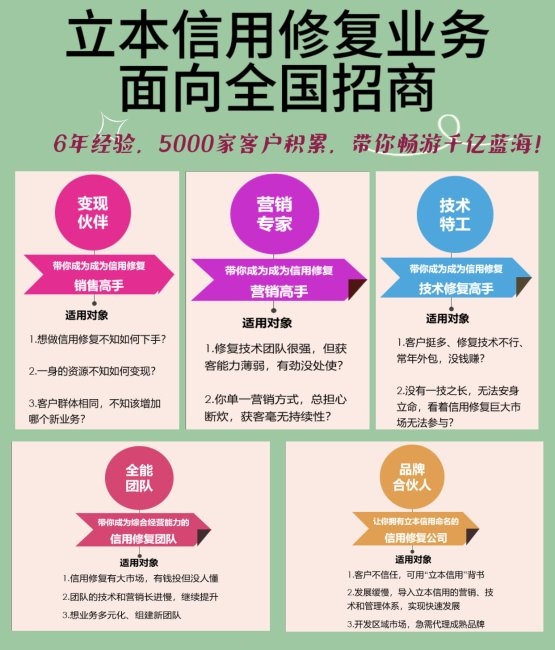 市场一片蓝海: 在多数县城,专业的信用修复服务几乎为空白。您要做的,是成为开拓者,而非竞争者。三、何以立本信用?我们为您铺就通往成功的每条基石
