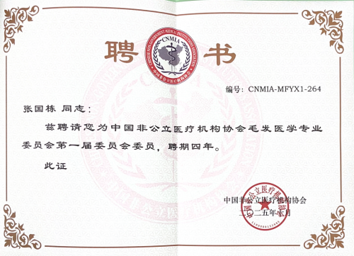 当选中国非公立医疗机构协会毛发医学专业委员会首届委员,对张国栋院长而言,既是荣誉更是责任。