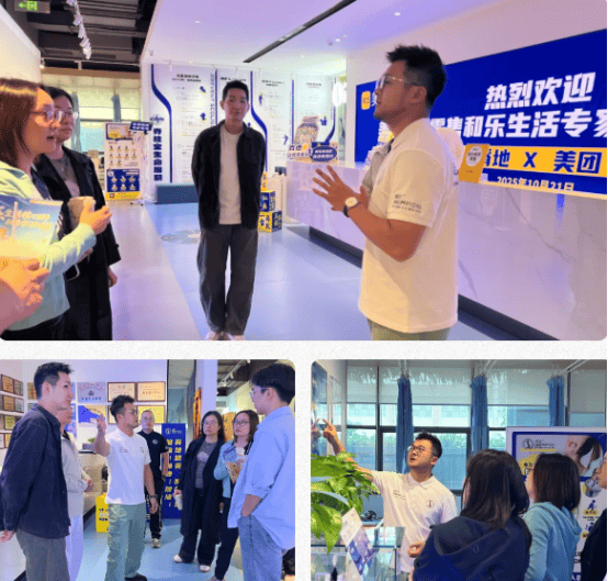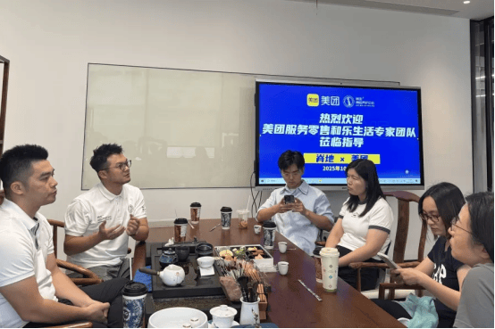 2025 年 10 月 21 日,脊地运营中心迎来重磅行业交流 —— 美团服务零售与乐生活专家团队一行莅临指导,与脊地就产业协同、模式创新、线上化升级等核心议题展开深度研讨。脊地总经理朱文彬、市场部负责人黄炜鹏全程热情接待,双方凭借各自领域优势,为健康服务行业数字化转型探索新路径。