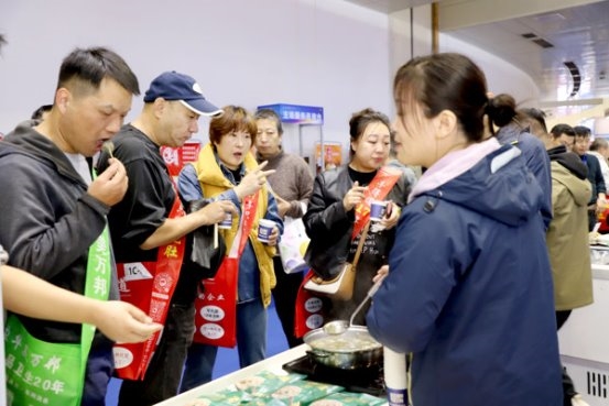展位现场人头攒动,免费品鉴区香气四溢,专业厨师现场烹饪各类美食,吸引众多观众驻足。“高钙羊肉奶香纯正无膻味”“沙葱牛肉丸Q弹有特色”等好评不断,行业伙伴也纷纷咨询合作,工作人员通过溯源系统演示,进一步增强大家对品牌的信任。