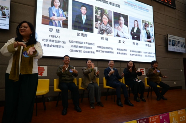 在“V-Dialog”圆桌对话中,北京博能志愿公益基金会副理事长零慧与五位跨界嘉宾深入探讨了“专业志愿社会创新生态网络的共建机制”。