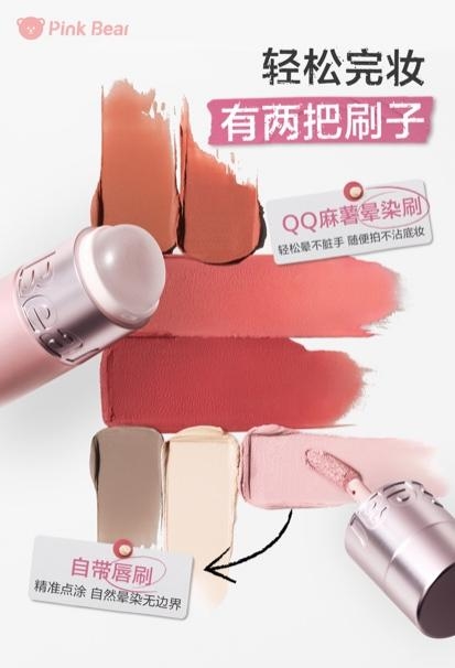 皮可熊带来全新「两把刷」多用霜,轻松手法即可塑造出挑妆容效果,带来一支化全妆、丝滑不晕妆的精致妆效。产品颠覆传统单一彩妆功效,将精致唇刷与柔软硅胶晕染刷合二为一,轻点便能在唇颊间自在上妆,一支即可上全脸,精致轻妆时刻在线。
