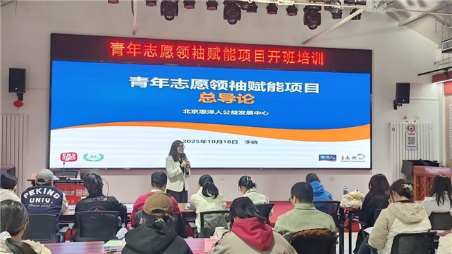 “一群人能走得更远,一群青年志愿者能点亮更多希望。”10 月 18 日,由北京惠泽人公益发展中心、共青团北京市海淀区学院路街道工委联合主办,和合社会工作发展中心协办的“青年志愿领袖赋能项目”在学院路街道党群服务中心正式开班。来自企业、高校、社会组织、社区的近 40 名青年,带着“让志愿专业起来”的共识,开启从“志愿者”到“志愿领袖”的跃迁之旅。