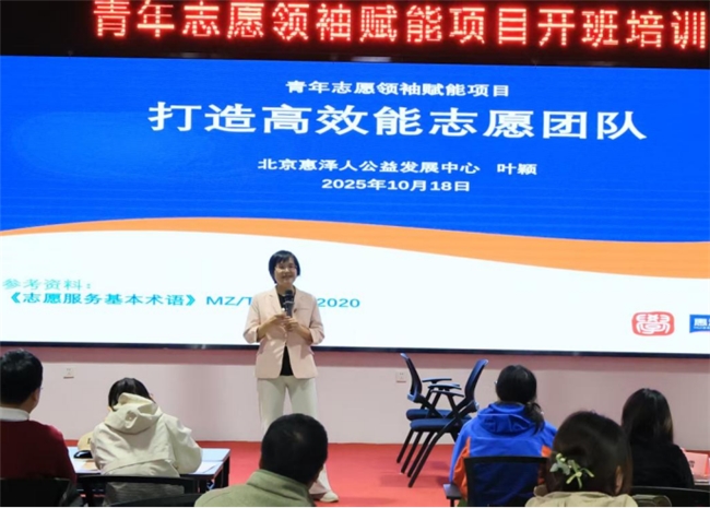 “志愿精神不是崇高标签,而是一种本能;把本能练成能力,再把能力过成智慧,就是领袖。”北京惠泽人公益发展中心创始人翟雁用一句金句为项目定调。她提醒青年:全球化浪潮下,志愿服务正走向专业化、规范化,唯有系统训练,才能让“善意”长成“解决方案”。