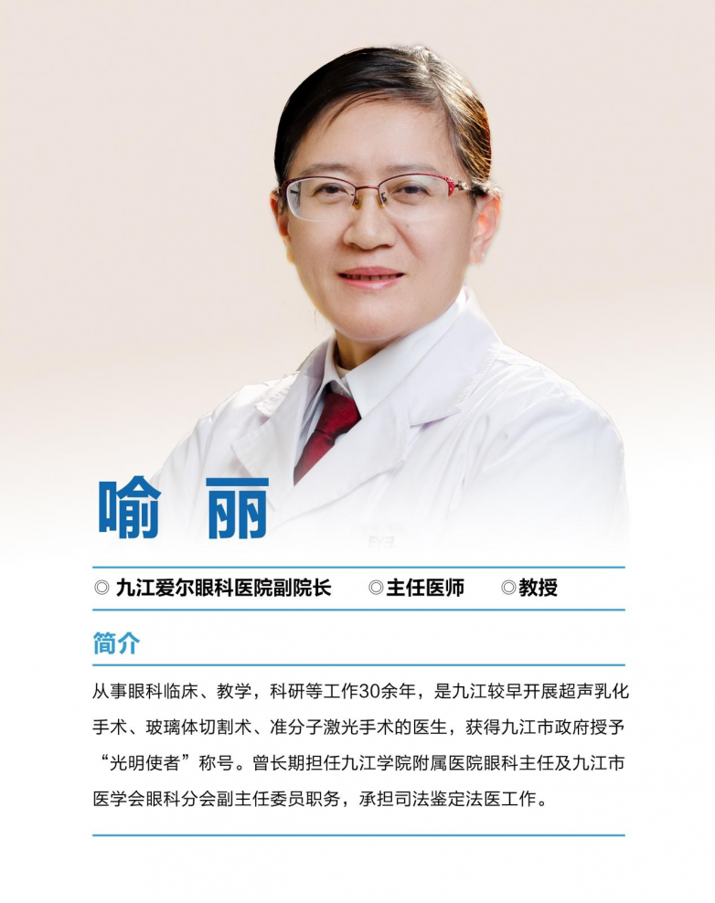 欢迎咨询九江爱尔眼科医院,让喻丽院长及其团队为您量身定制“高清无压”的个性化诊疗方案,携手迈向清晰明亮的未来!