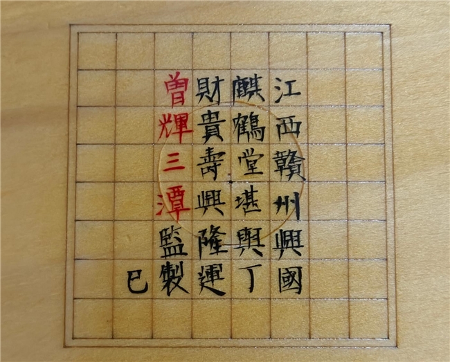 罗盘直径六寸,容纳三十余层刻度,间距不足两毫米。开线用祖传"牛角划线刀",刀刃薄如蝉翼,匠人屏息凝神,左手拇指定位,右手执刀划同心圆,每刀与呼吸相协,"失之毫厘,差之千里"。开线毕,特邀赣州书法世家传人,以狼毫小楷蘸朱砂松烟墨,在不足指甲盖大的区间书写天干地支、二十四山等数百字符,最小者仅三毫米见方,需"笔笔中锋":"甲"字竖如悬针,"壬"字弯钩似新月,"乾"卦三横间距丝毫不差。匠人双目紧盯盘面,手腕悬空,写满一圈需半个时辰,汗水浸透衣衫而不自知。三十余道工序全凭手眼心协调,不用电动工具,正是"以心造物"的执着。