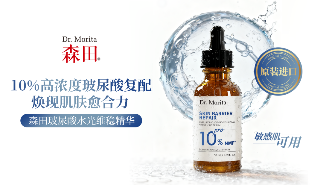 “森田玻尿酸水光维稳精华”采用森田药妆独家萃取技术,萃出更小、更易吸收的成分。MEDMORI®成分加持,具有保湿、焕活肌肤的功效,彰显了美妆科技所蕴藏的持续创新动力。