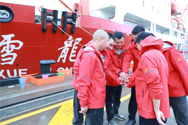 登船的时刻终于到来,队员们依次走向“雪龙”号登船口,坚定的背影融入海天一色。他们带走的,是中国化学工程的重托与期盼;他们留下的,是中国化学工程人勇闯南极、为国争光的无畏精神。