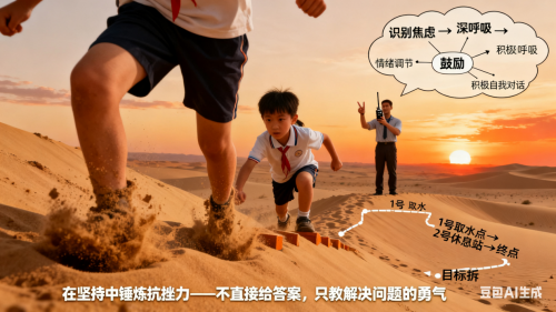 在智选的研学营地,这样的培养并非空谈。沙漠徒步挑战中,导师不直接帮助孩子跨越障碍,而是引导他们通过目标拆解、情绪调节完成任务,在坚持中锤炼抗挫力;商学实践课上,学生组队开展公益项目,从资源对接碰壁到最终落地,在真实体验中建立解决问题的信心与社会责任感,这种变化远非单纯的知识教学所能实现。