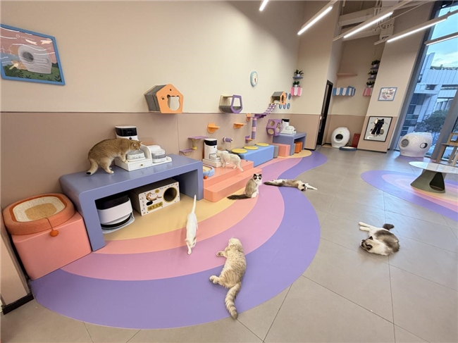 在宠咕咕petgugu与宠胖胖联合打造的活体照护空间中,猫咪们生活在一套持续运转的智能健康体系中——饮水、喂食、如厕、清洁等环节由宠咕咕智能设备协同完成,这也让“智慧养宠”真正从概念走入现实。
