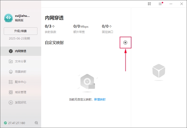 启动客户端后,点击“添加映射”,填写本地SVN服务的访问地址。例如,VisualSVN默认运行在HTTPS 443端口,若你的主机地址为192.168.1.10,就在“内网地址”中填入192.168.1.10:443,协议选择 HTTPS。
