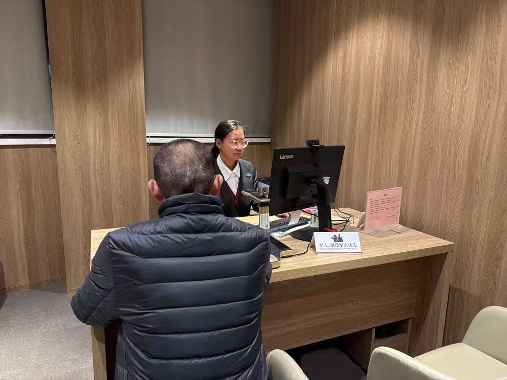 咨询台工作人员,留意到他文件袋里有一个军官证。她立刻快步上前,送上一个温暖的微笑:“先生您好!您是军人吧?我们这里有“军人绿色通道”,可优先办理业务,我带你们过去办理吧。”