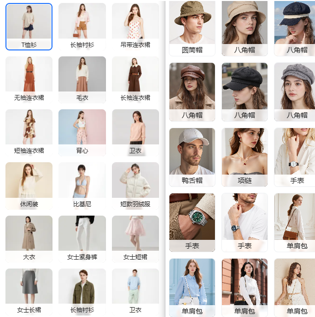 覆盖品类广:不仅是服装,鞋子、包包、帽子、眼镜、项链、耳环、腰带、丝巾等都可以实现 AI 模特功能!