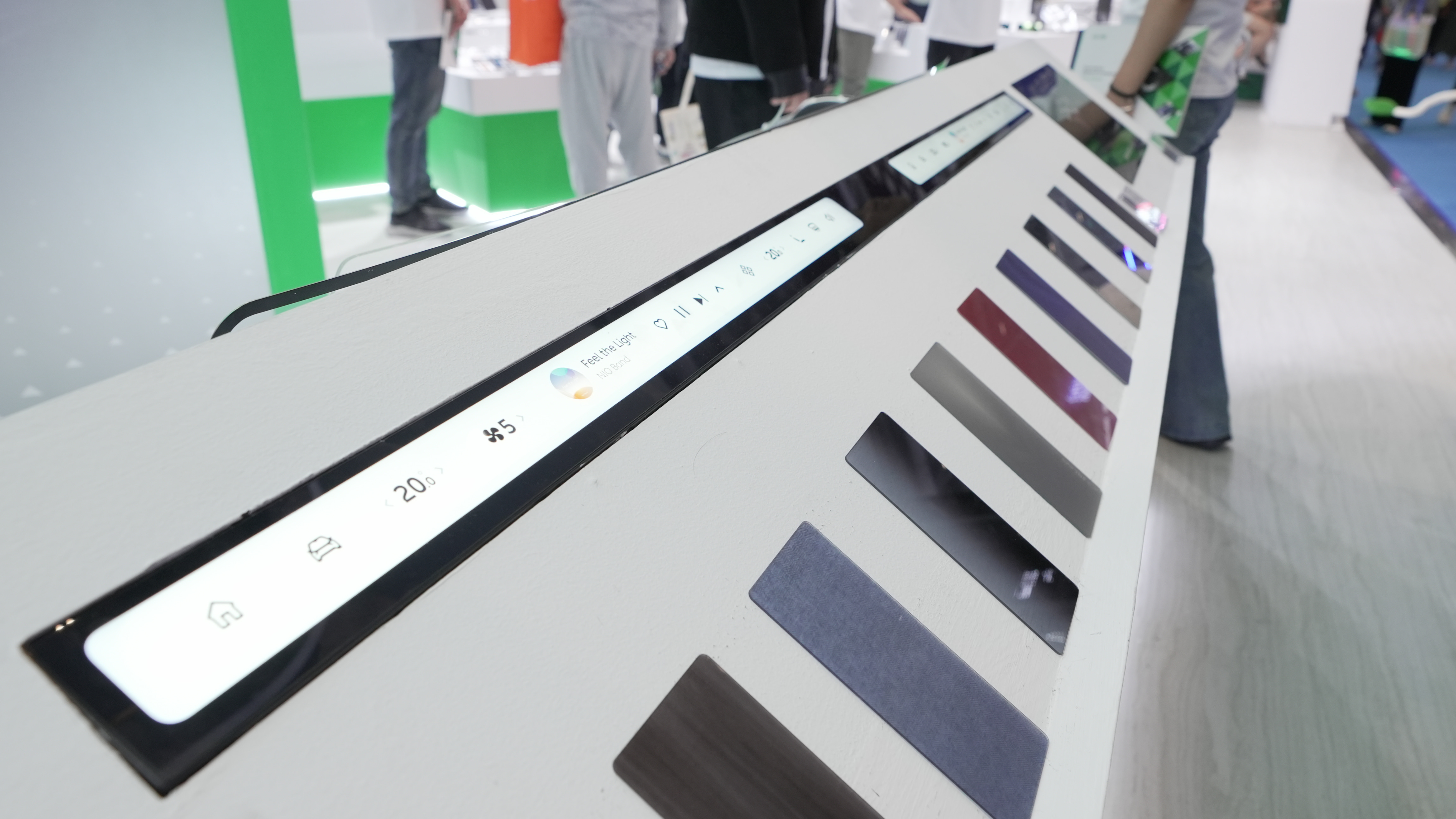 在展会现场,全球量产的最长车载玻璃——天际屏,成为品牌客户及合作伙伴最关注的产品。伯恩光学车载业务经理黄邵宁介绍,“该产品不仅将仪表信息,娱乐影音、EMS影像有机融合在一起,科技范十足,又和中控屏,HUD等其他屏幕联动一起营造多彩的氛围,给车主更多的情绪价值。”