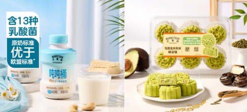 在配料合规与健康化上,“沃集鲜”多款产品给出了具体实践:吨吨桶发酵乳仅使用生牛乳、白砂糖与乳酸菌三种配料,以清洁配方搭配优效工艺,兼顾口感与安全;马蹄龙井风味绿豆糕融合广西马蹄丁、桂花等特色食材与墨西哥牛油果泥、泰国糯米等全球优选原料,不仅减糖20%,更做到不添加防腐剂,实现传统糕点的健康创新;加鲜蚝油蚝汁含量不低于45%,仅含五种配料,在保障风味的同时降低合规风险,凭借高性价比成为品类热门。