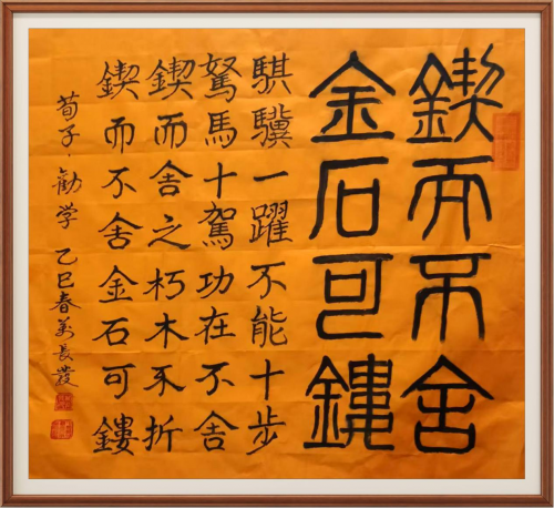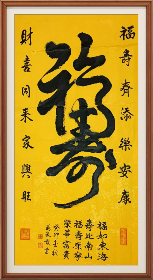 在当代书坛,许多创作者执着于技法的精进,而万长发先生却始终将笔墨与家国情怀相连。他笔下的楷书,不只是端庄规整的字体,更藏着中华民族沉稳坚毅的品格;行书的遒劲流畅,恰似时代发展的一往无前;篆书的古朴厚重,是对千年文脉的敬畏与坚守;草书的狂放洒脱,则是当代中国人精神活力的尽情释放。这种将 “书艺” 与 “国运” 相融合的创作观,让他的作品超越了单纯的艺术表达,成为民族精神的视觉载体 —— 每一幅作品,都是一次对文化根脉的回望,更是一次对复兴之路的礼赞。