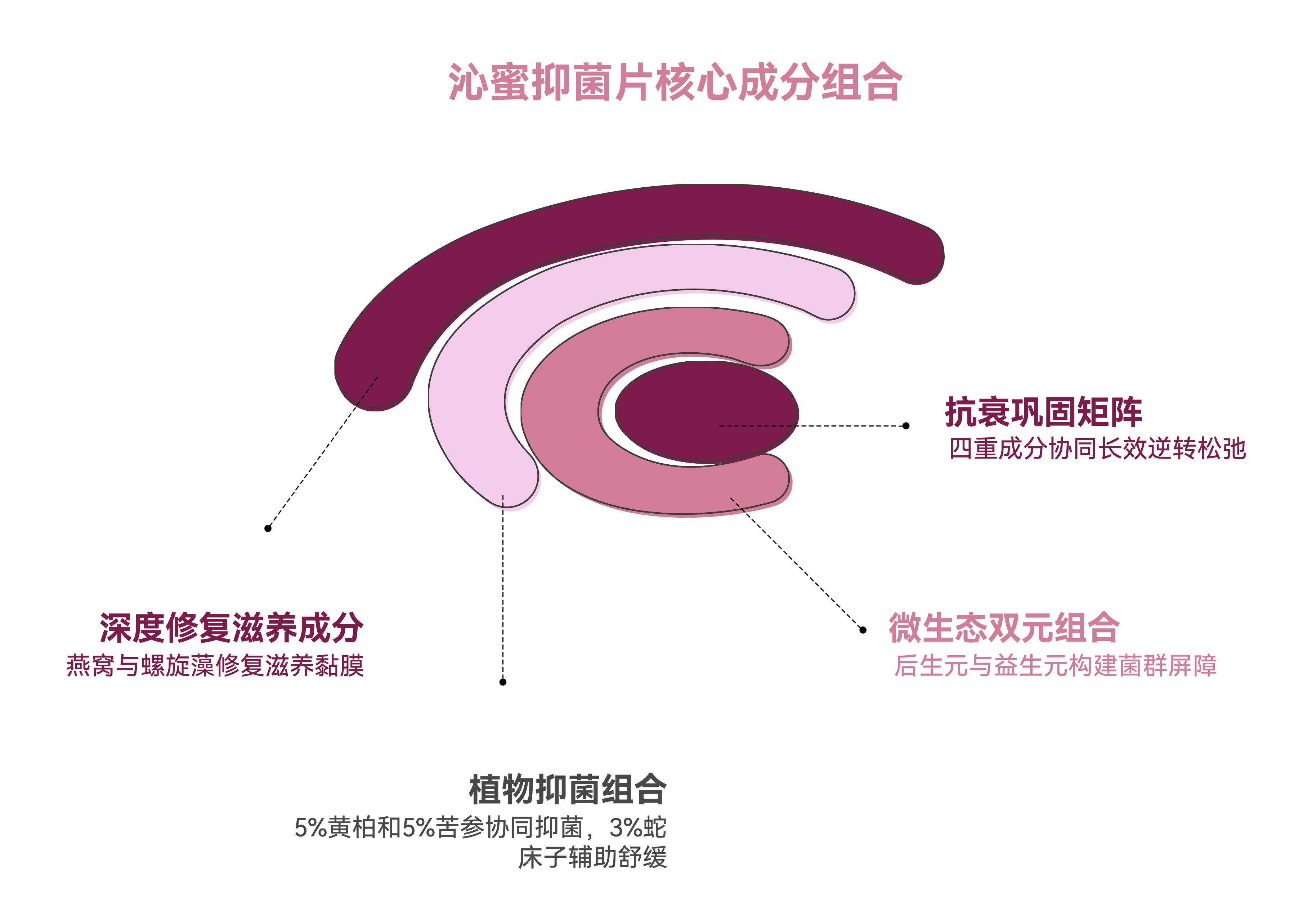 25 + 中国女性的私密养护,早已不止于 “即时舒缓”—— 长期菌群失衡反复、生育后松弛难以逆转、更年期干涩持续困扰,这些深层问题需要 “周期化、精准化” 的深度养护方案。普通抑菌产品仅能短期抑制有害菌,抗衰产品缺乏微生态调节能力,难以兼顾 “抗衰、抑菌、修复” 的核心需求。