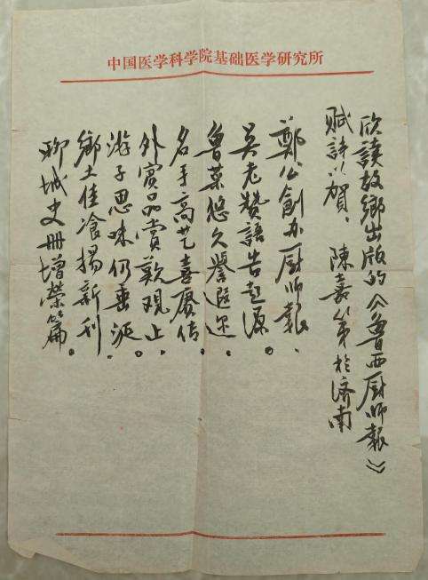 同样热心的吴先生,又将报纸转赠给省城济南的一些文人雅士。其中,受赠报纸的就有陈嘉第先生。经聊城著名书法家丹辉先生多方辗转了解,陈先生祖籍在聊城东关街,是一位商业专家,同时也是喜欢诗文的雅士。陈嘉第先生看过报纸后十分欣赏和感动,欣然赋诗给予鼓励。