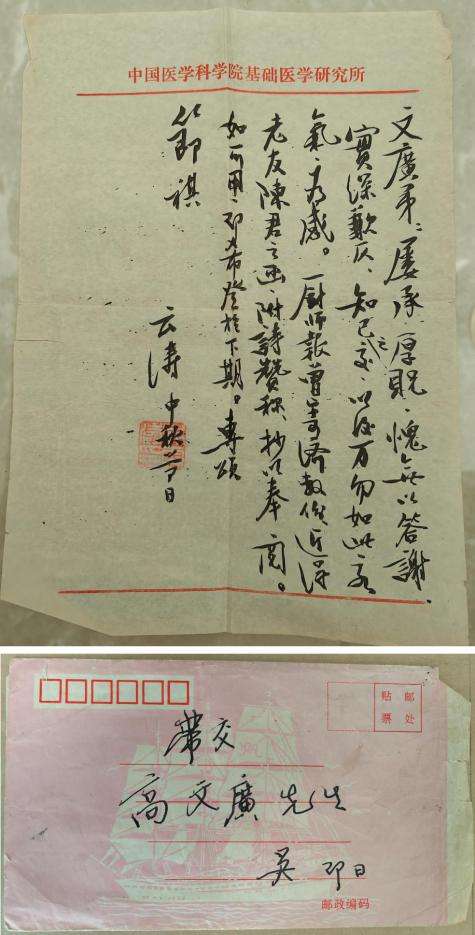 收到诗时,正值中秋佳节,吴先生十分高兴,专门抄下诗歌,并附短信一封,托人转交高文广先生。