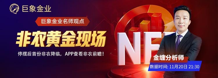 本周四(11月20日)21:30,美国非农数据公布之时,巨象金业(香港黄金交易所AA类117号行员)资深黄金分析师金缠也将于巨象官网发布实时发布策略参考。