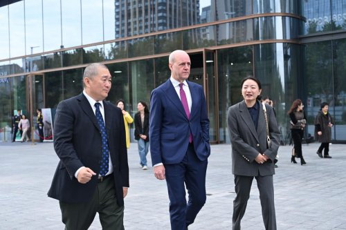 2025年11月19日,第十五届全运会闭幕前夕,瑞典前首相、欧盟理事会前主席、瑞典足协主席、未来生活艺术研究院名誉院长约翰·弗雷德里克·赖因费尔特到访香江1号。