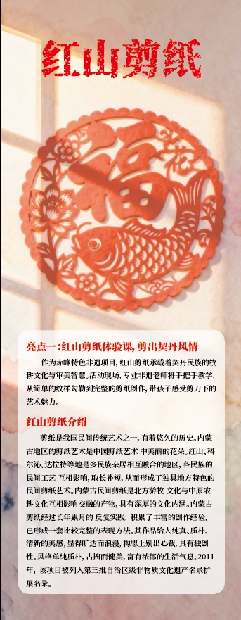 专为孩子们打造的非遗体验重磅上线!11 月 22 日四场红山剪纸课(每节 30 人),一把剪刀剪出契丹牧耕风情;两场葫芦 “醒烙” 课上,可亲手用烙铁勾勒吉祥纹样,让 “福禄” 非遗作品成为专属纪念。