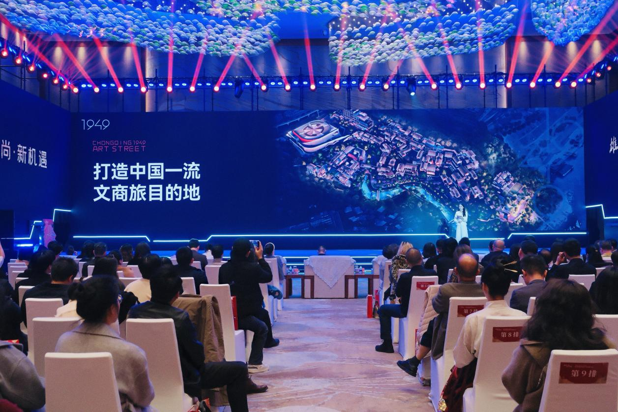 2025年11月19—21日由重庆市文化和旅游发展委员会主办的“多彩中国佳节好物”文化和旅游贸易促进活动(时尚消费专题)在解放碑步行街盛大启幕。在11月20日下午的“时尚产业招商大会”上,重庆1949艺术街携四大核心IP及创新业态亮相,全面展现项目“立足本土、辐射世界”的文化自信与消费引领力。
